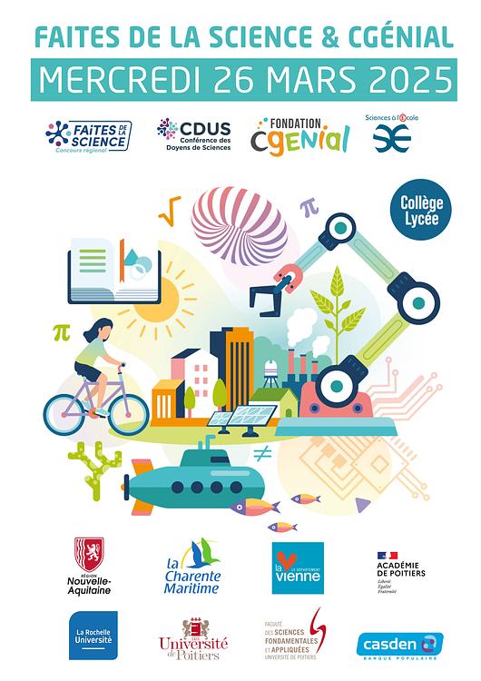 Comme chaque année, les finales régionales Faites de la Science (organisées par les universités de Poitiers et de La Rochelle) et la finale académique C’Génial Collège (organisée par le rectorat) se dérouleront conjointement.