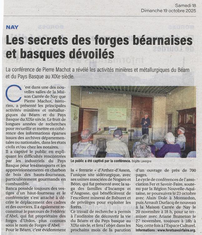 Conférences sur le travail des charbonniers et des forges en vallée d'Ouzoum