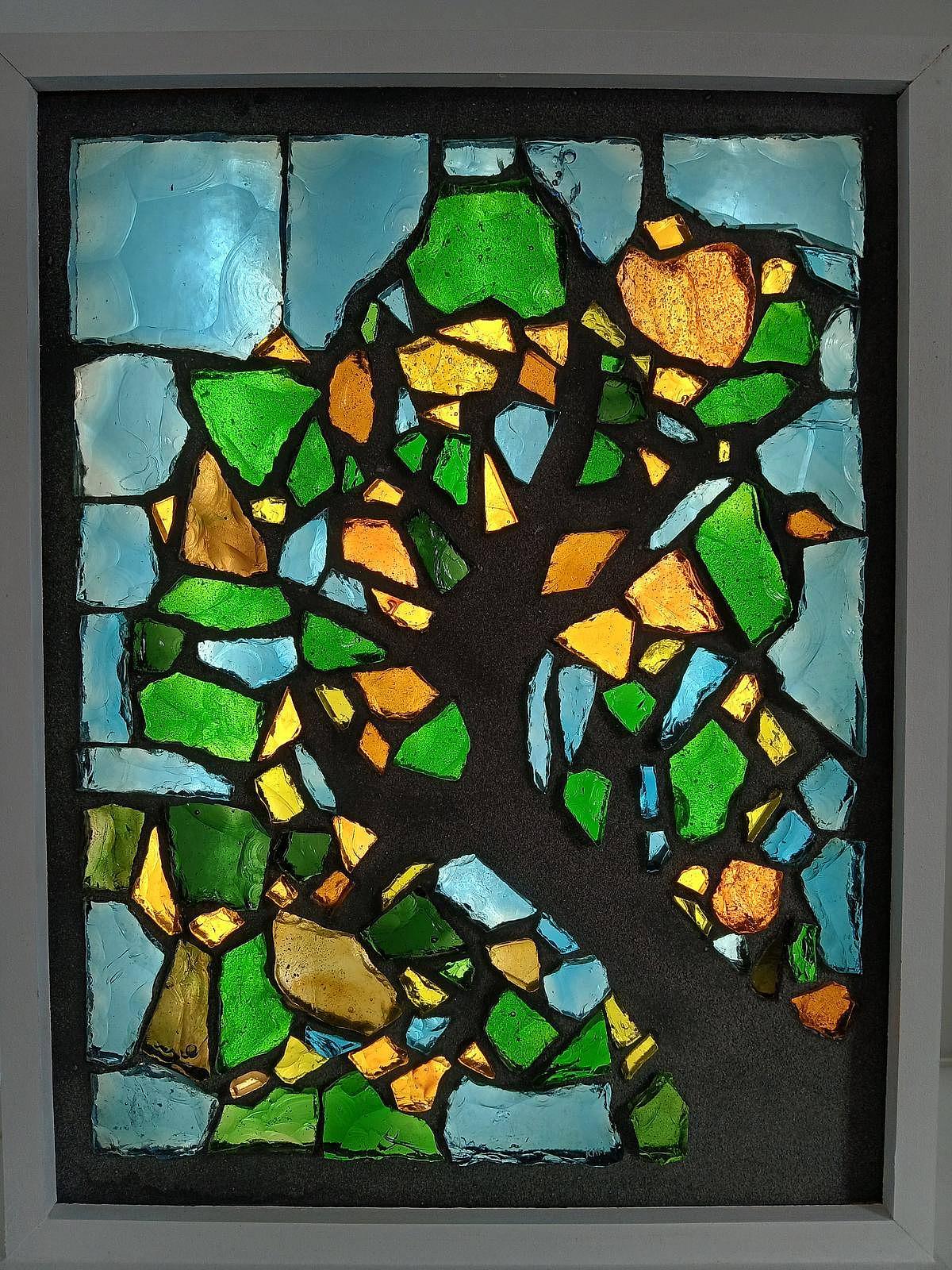- Tableau en mosaïque de verre : Les familles ont exploré le travail d'Isabelle Cousin et créé un tableau en verre collé. Ils ont pu manipuler les couleurs et les formes, développer leur sens de la composition et s’initier aux techniques de mosaïque.
