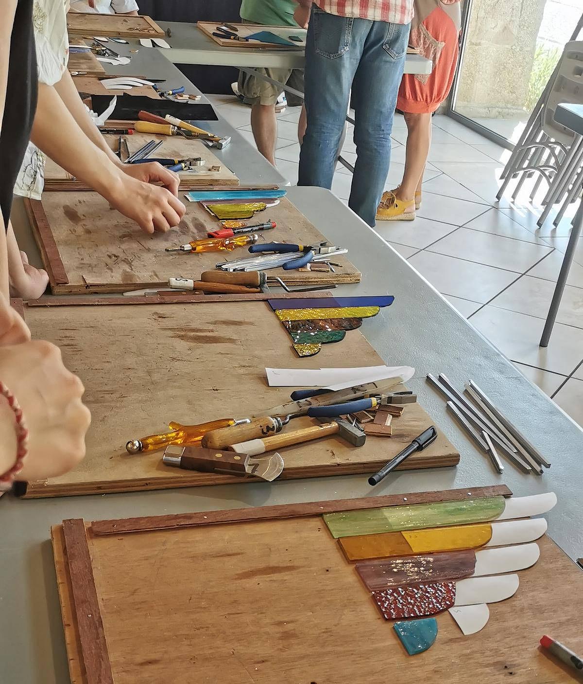 - La magie du verre : Les participants ont expérimenté l’art du fusing en réalisant leurs propres créations en verre. Ils ont découvert comment le verre réagit à la chaleur, appris à assembler couleurs et textures, et se sont approprié cette technique pour créer des pièces uniques.