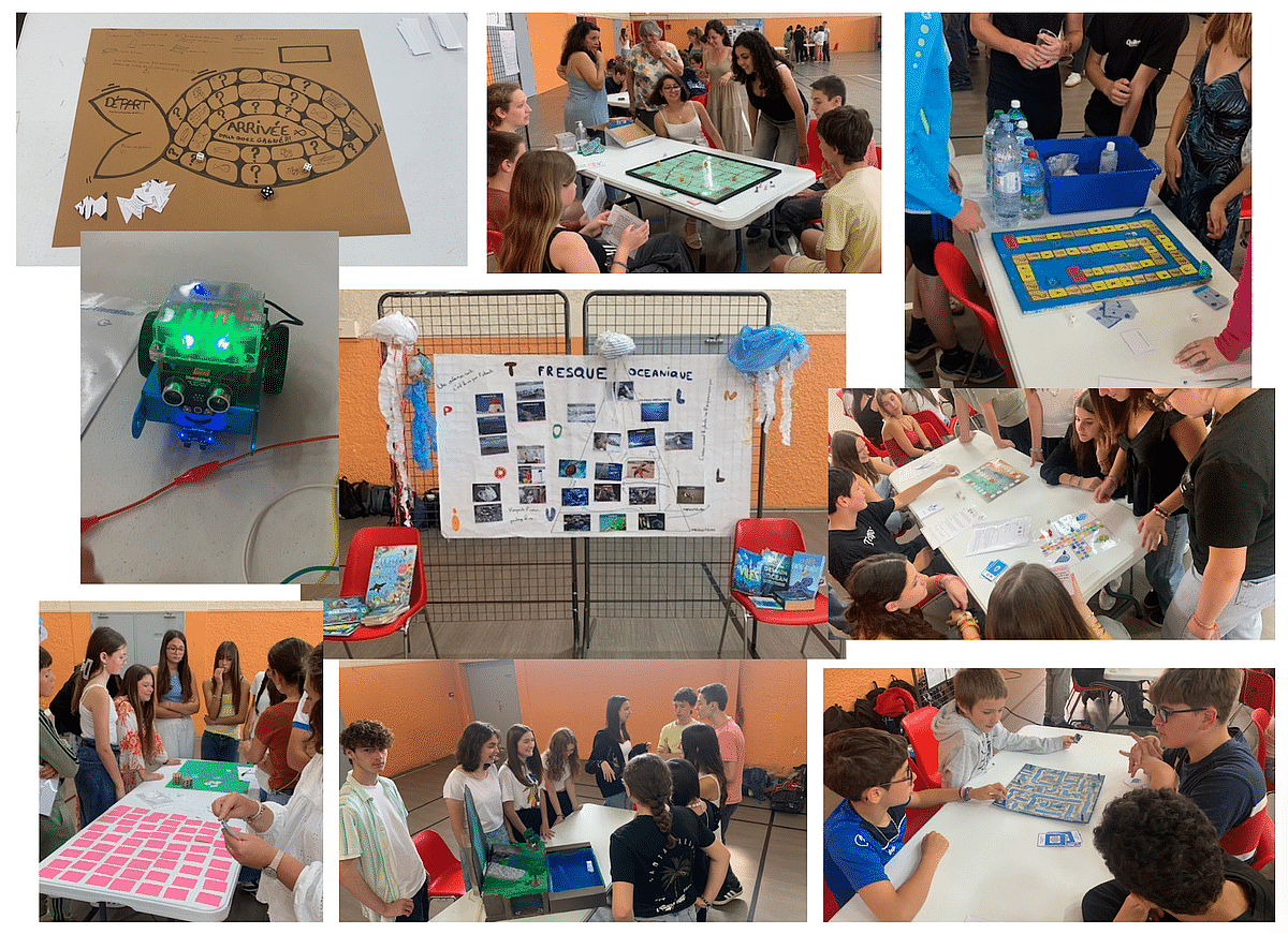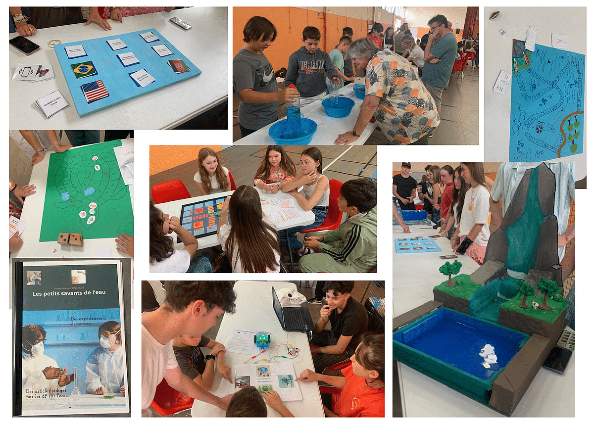ont alors pu tester et échanger leurs connaissances entre pairs dans une ambiance détendue et ludique ! Expositions, expériences, maquettes, jeux de société (dont un incluant de la robotique), quiz, memory, journal de l'eau, il y en avait pour tous les goûts !