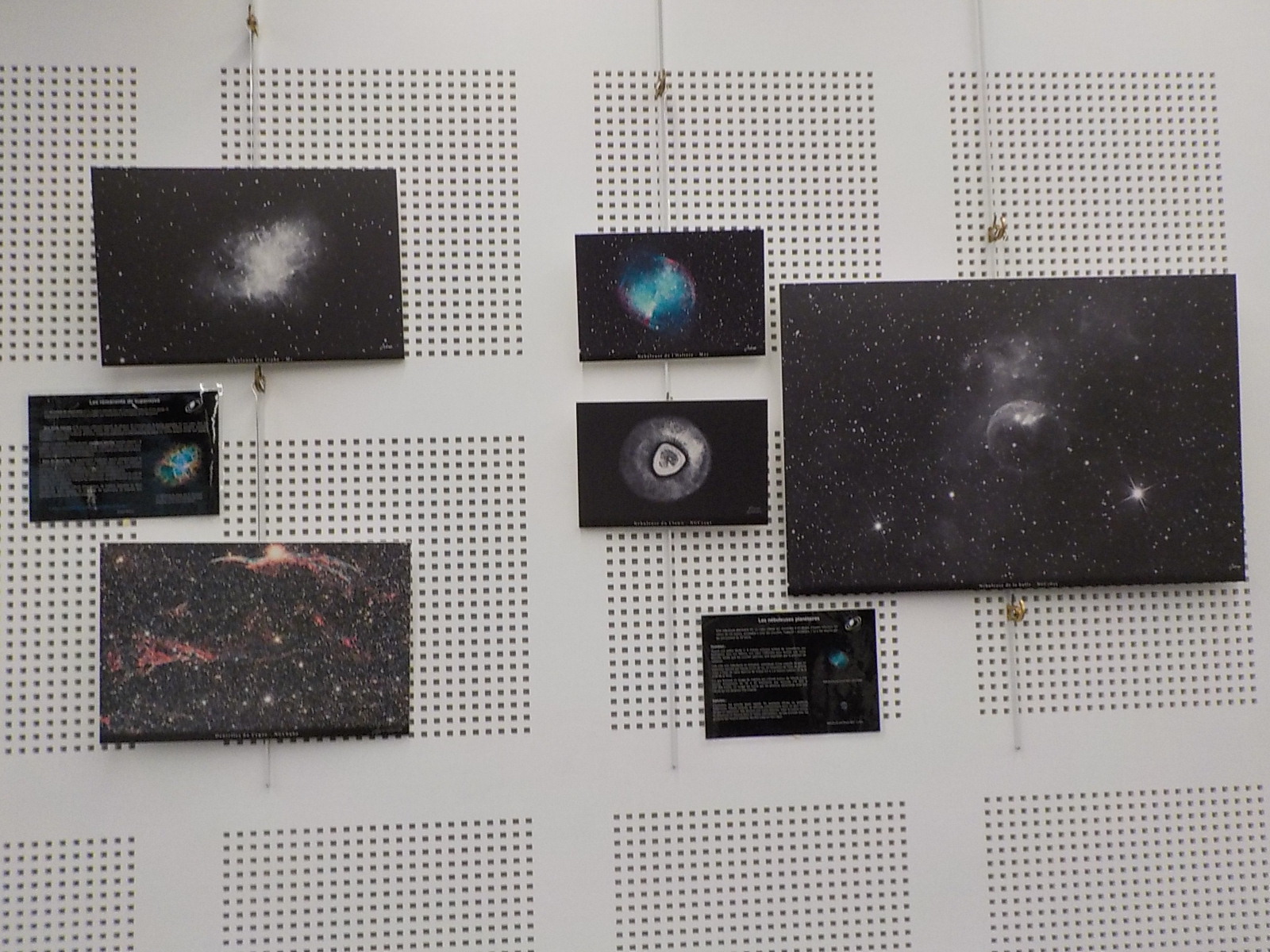 - Tous ces gens out pu admirer photos et dessins d’objets du système solaire (aurores boréales en France, lune, soleil, éclipses, planètes), mais aussi les nébuleuses colorées, les amas ouverts, les étoiles mourantes que sont les nébuleuses planétaires, et les supernovas qui signent la mort cataclysmique d’étoiles gigantesques.