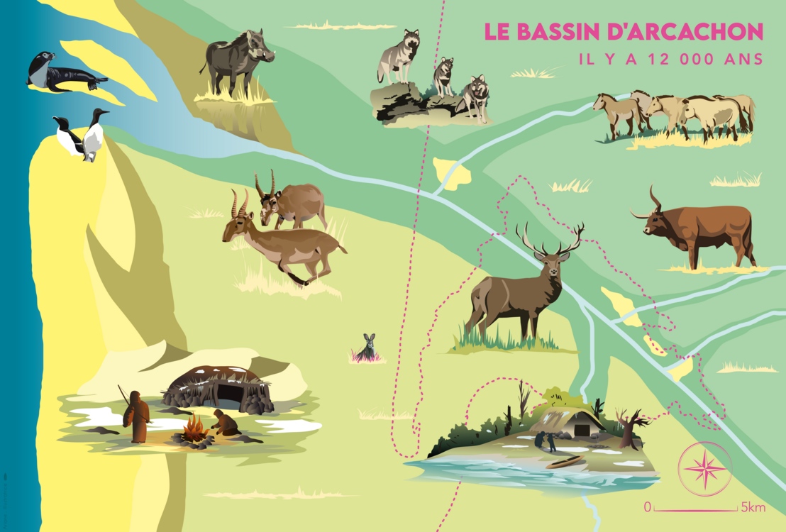 La boîte « Le Bassin d’Arcachon – 12 000 ans d’histoire » contient 3 puzzles illustrant les paysages de ces trois périodes et une notice explicative apportant des informations complémentaires issues des travaux scientifiques disponibles.