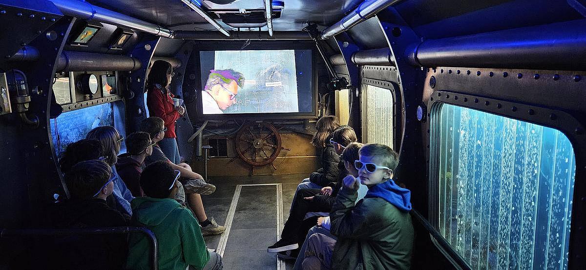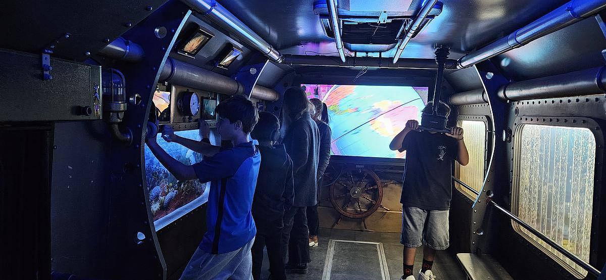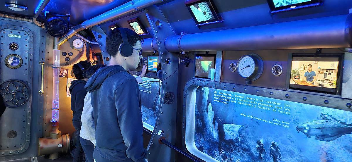 Au cours de la journée ce ne sont pas moins de 8 classes de 5ème ainsi que 215 élèves qui ont été accueillis à bord lors des interventions scolaires et lors des temps d'accès libre ( durant les récréations et une partie de la pause méridienne). Ils ont ainsi pu interagir avec les équipements du Notilus: tablettes tactiles, cadres photos numériques, périscope VR et écran géant avec lunettes 3D.