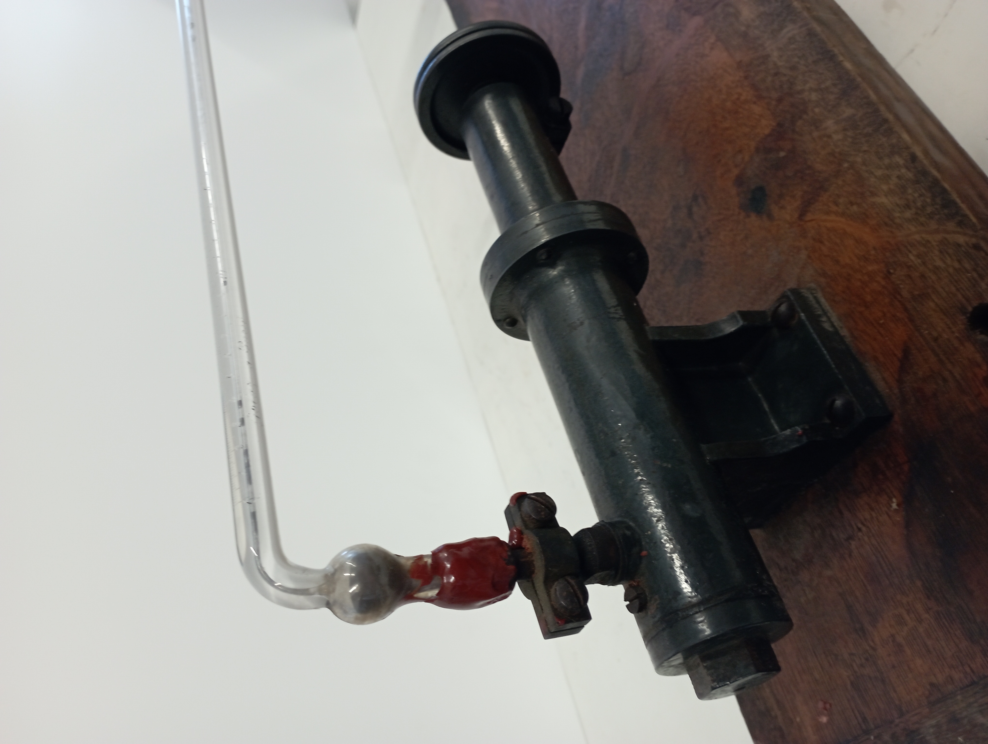 L’appareil est utilisé pour les dosages des mélanges de divers gaz tel que ceux émis par les plantes. Il consiste en un corps de pompes, prolongées par une portion cylindrique terminée par un piston plongeur d’un côté, et de l’autre par un disque circulaire équipé d’une manivelle permettant d’enfoncer plus ou moins le piston plongeur dans le corps de la pompe.