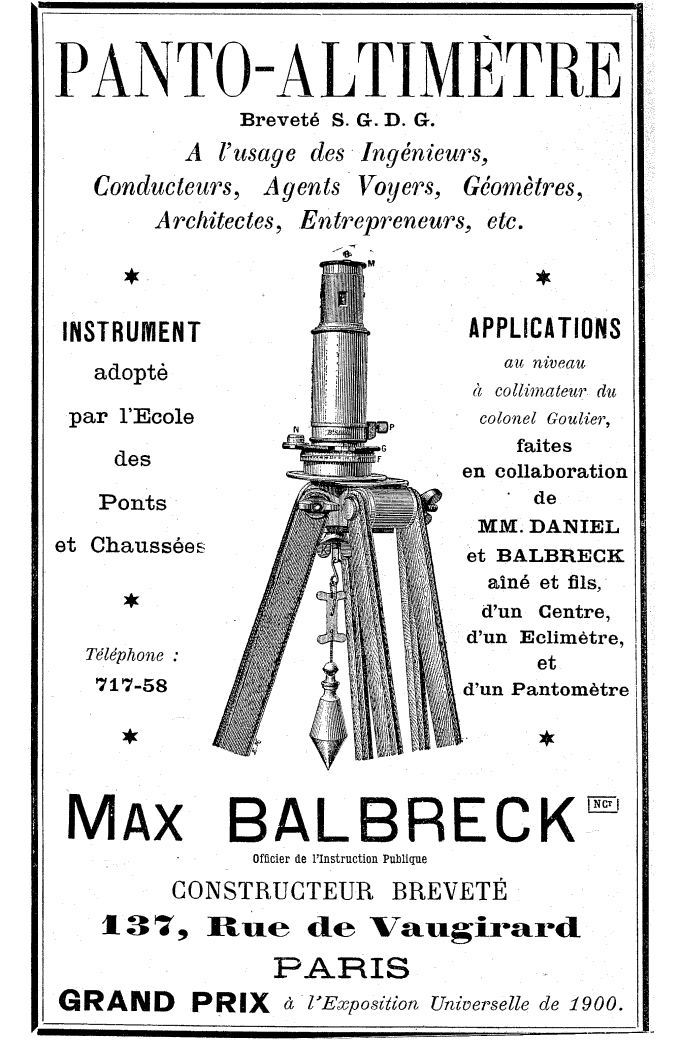 Il est possible de le combiner à un Panto-Altimètre, tel celui de Max Balbreck, présenté à l’Exposition Universelle de 1900.