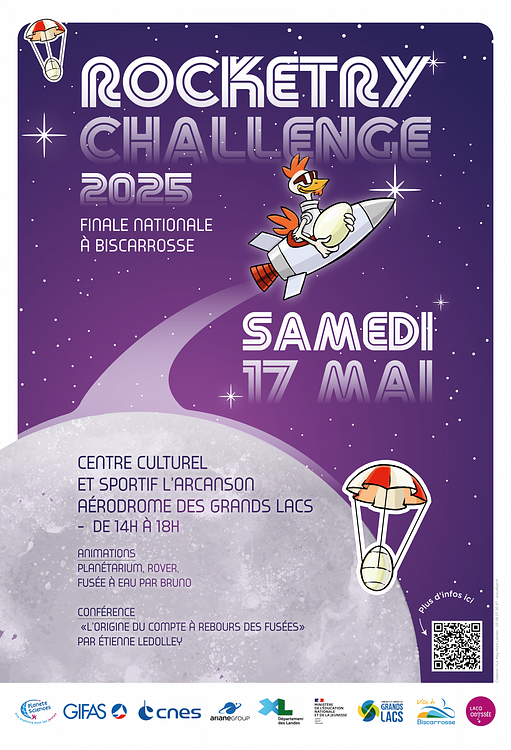 Co-organisé en France par Planète Sciences et Lacq Odyssée avec le soutien du CNES, du GIFAS, d’Arianegroup et du Département des Landes, cette compétition a vu s'affronter cette année 48 équipes qui avaient comme objectif de lancer leur fusée le plus haut possible en assurant aux oeufs embarqués un retour sans dommages.