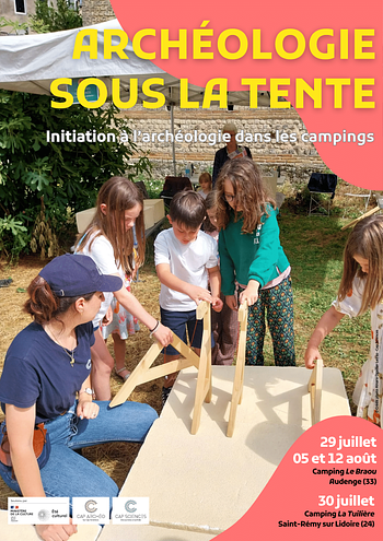 🧱 Ce programme d’animation itinérante dans les campings se propose d'amener des ateliers d’initiation à l’archéologie au plus près des familles en vacances, dans des lieux de détente et de sociabilité. Dans ce cadre informel, il vise à faire découvrir et expérimenter les gestes du métier et le patrimoine de proximité de façon accessible et participative.