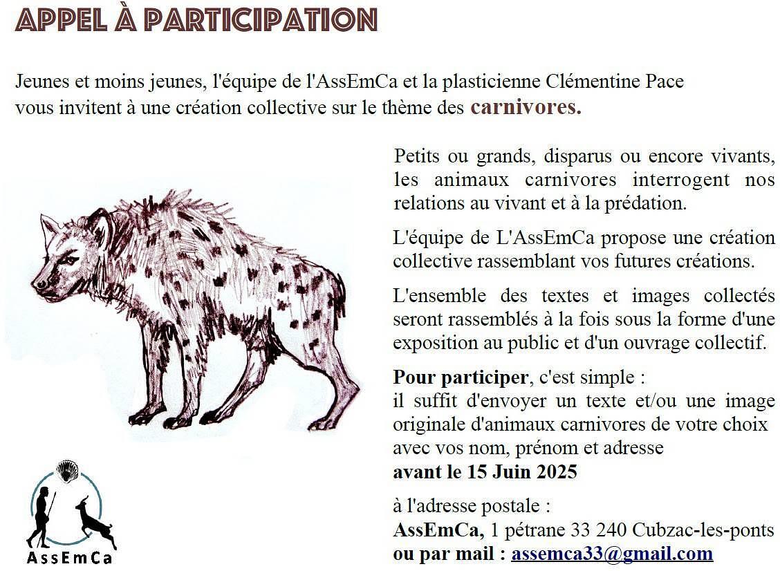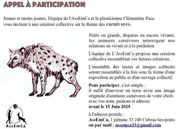 l'association AssEmCa propose une création collective ouverte à toutes et à tous, sur le thème des animaux carnivores.