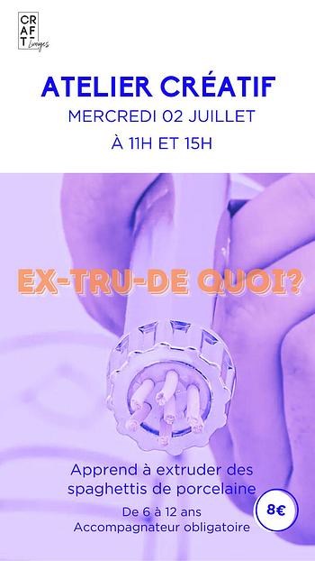Viens découvrir la céramique à travers un atelier créatif pour expérimenter et créer à travers la technique de l’extrudeuse.