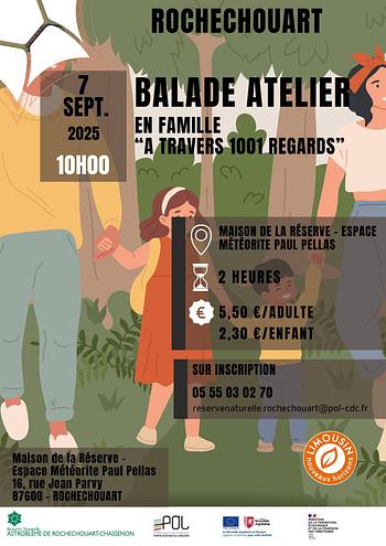 Atelier « A travers mille et un regards » : au gré de la balade, un peu d’art avec la création d’une œuvre éphémère personnelle grâce aux cadeaux de la nature, un soupçon d’imaginaire avec quelques histoires sur la faune et la flore qui nous entourent. Gardez votre âme d’enfant, nourrissez votre curiosité cartésienne, savourez le plaisir d’être dans la nature et de la ressentir, prenez du temps pour vous … un même lieu, plusieurs visions, une parenthèse de calme…
