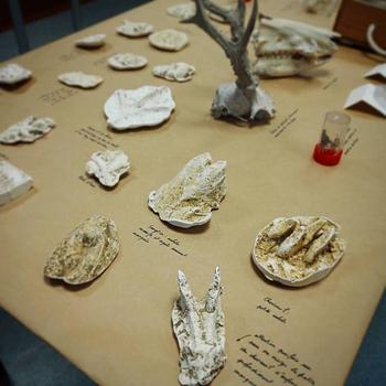 Multiples indices à découvrir, traces, plumes et restes de repas.
