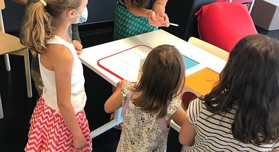 Les enfants sont invités à créer leur propre jardin à l'encre tamponnée selon la technique de Mosti, artiste de l'exposition Jardin et Compagnie.