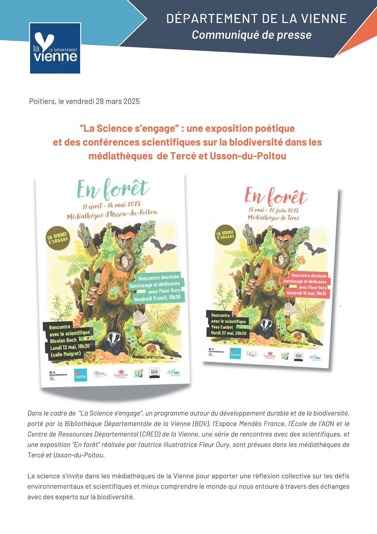 Cette conférence est organisée dans le cadre de la manifestation « La science s’engage » avec le réseau des bibliothèques de la Vienne et avec la médiathèque de Tercé.