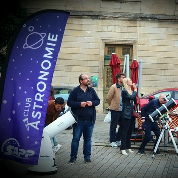 Observation de notre étoile,le Soleil (avec des filtres). Montrant de nombreuses taches révélant son activité.
