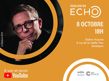 La rencontre sera diffusée en direct sur la page Facebook de Cap Sciences et sur la chaîne YouTube de la librairie Mollat puis disponible en replay sur notre playlist ECHO.