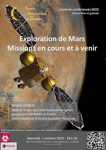 Plus de cinquante missions depuis 1960, dix missions encore en opération aujourd’hui, Mars est sans doute la planète du système solaire la plus visitée et la mieux connue. Il apparait aujourd’hui que dans un lointain passé, Mars a sans doute connu des conditions d’environnement similaires à la Terre à une époque où la vie y est apparue. Mars était fort probablement habitable, mais était-elle habitée ?