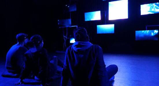 Les formes d'onde de chaque corde sont utilisées comme surfaces de vidéo-projection dans une narration dessinée.