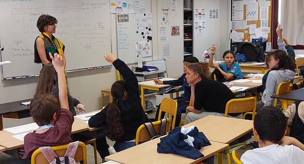 > Atelier scientifique "L'eau à la loupe" (classe CP - école primaire) avec S.Le Faucheur et Carine Arnaudguilhem (IPREM, Pau)