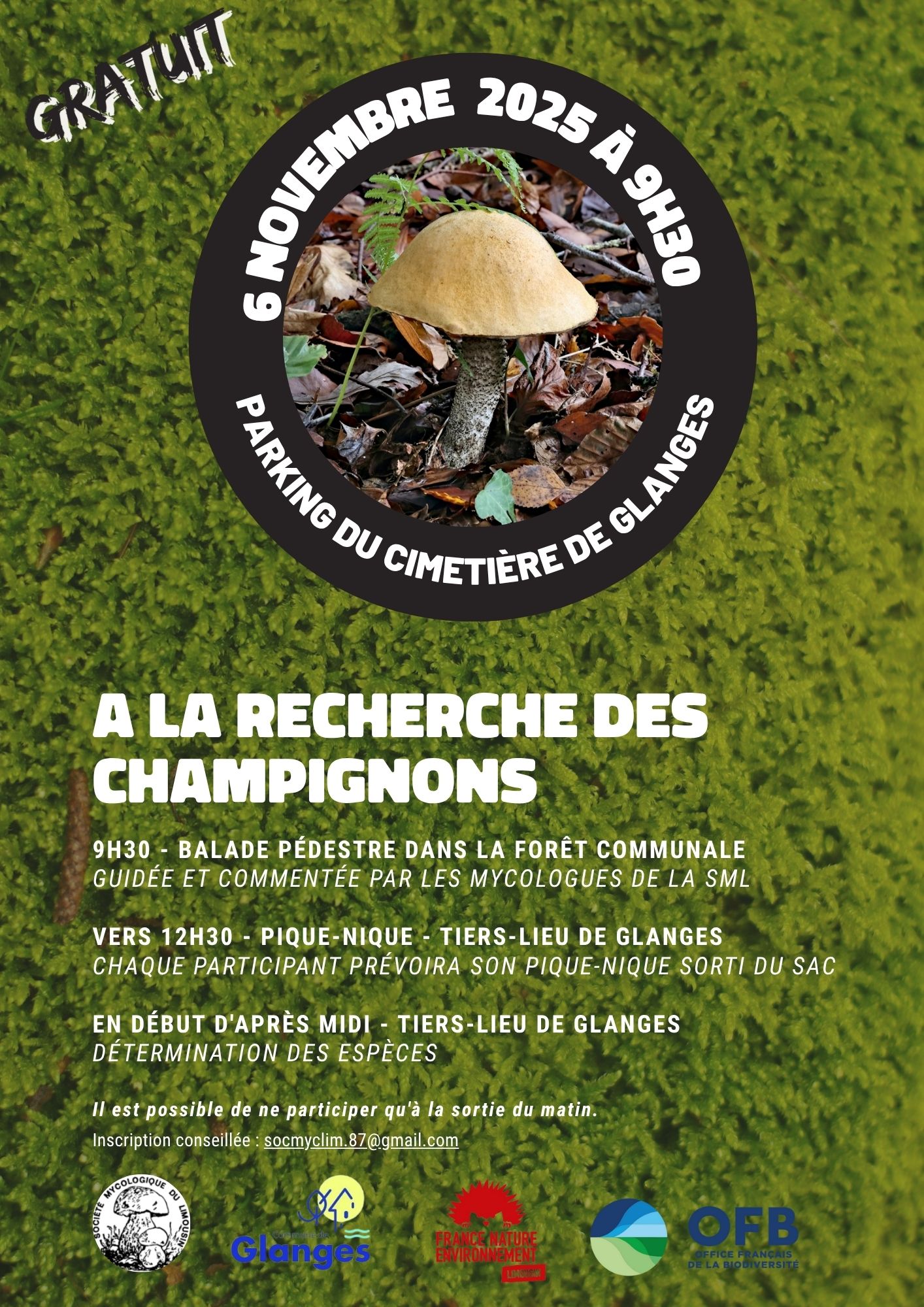 La Municipalité de Glanges organise avec la Société Mycologique du Limousin, cette journée dans le but d'enrichir l'inventaire de la fonge de son Atlas de la Biodiversité Communale
