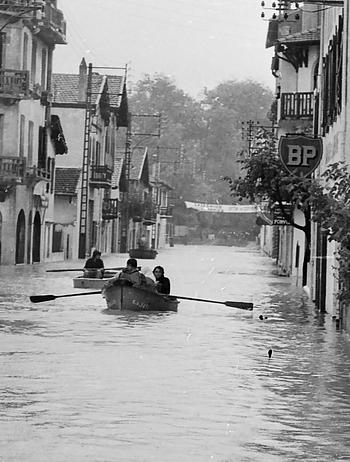 (Photo, les inondations de la Nivelle à Ciboure en 1959, source : CPIE Littoral basque avec l'autorisation aimable de Daniel Velez, photographe)