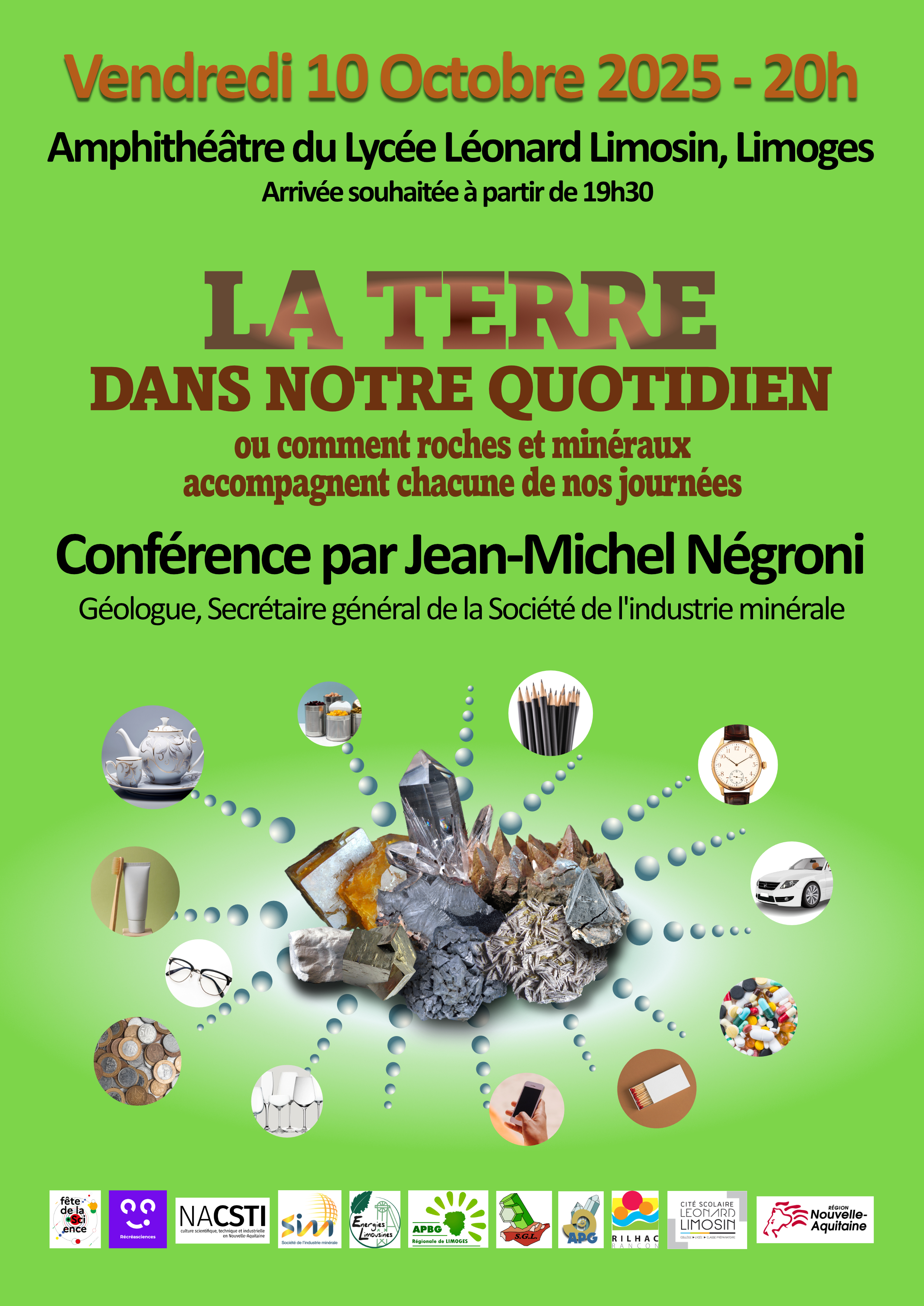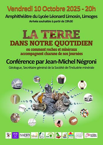 Cette conférence de Jean-Michel NÉGRONI, géologue et secrétaire général de la SIM, au Lycée Léonard Limosin de Limoges le vendredi 10 septembre à 20h abordera ces différents sujets de réflexion.