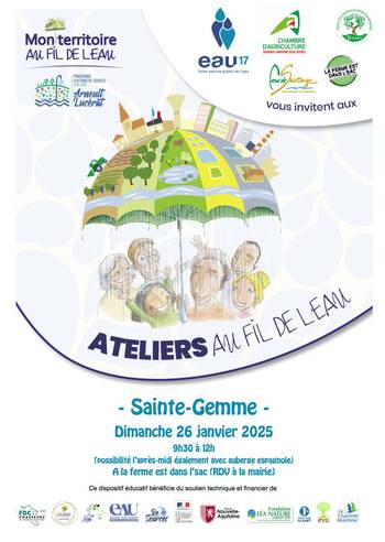 Atelier co-organisé par l'association TERDEV, Eau 17 , La Ferme est dans l'Sac ,EVA 17, la mairie de Sainte-Gemme (17), la communauté de communes "Coeur de Saintonge", le Département de la Charente-Maritime (via son dispositif EVA) et la chambre d'agriculture interdépartementale de la Charente-Maritime et des Deux-Sèvres.