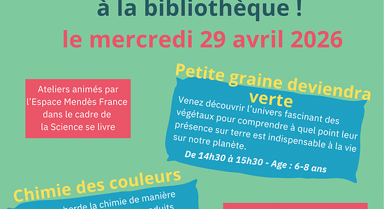 Dans le cadre du Projet "Curieux de Sciences" , la médiathèque de Sainte Eulalie accueille Cap Sciences pour un atelier tout public accessible dès 6 ans. Cet atelier vous permet de découvrir l’univers fascinant des végétaux pour comprendre que leur présence sur terre est indispensable à la vie sur notre planète.