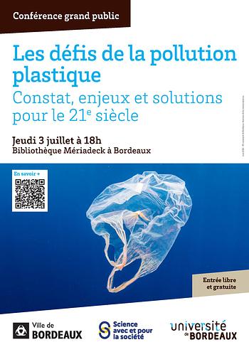 A l’occasion de la conférence annuelle du groupement de recherche français « Plastiques, Environnement et Santé » qui se tiendra à Bordeaux du 1er au 3 juillet 2025 prochain, l'université de Bordeaux organise une soirée grand public le 3 juillet prochain sur la thématique des défis de la pollution plastique de 18h à 20h.