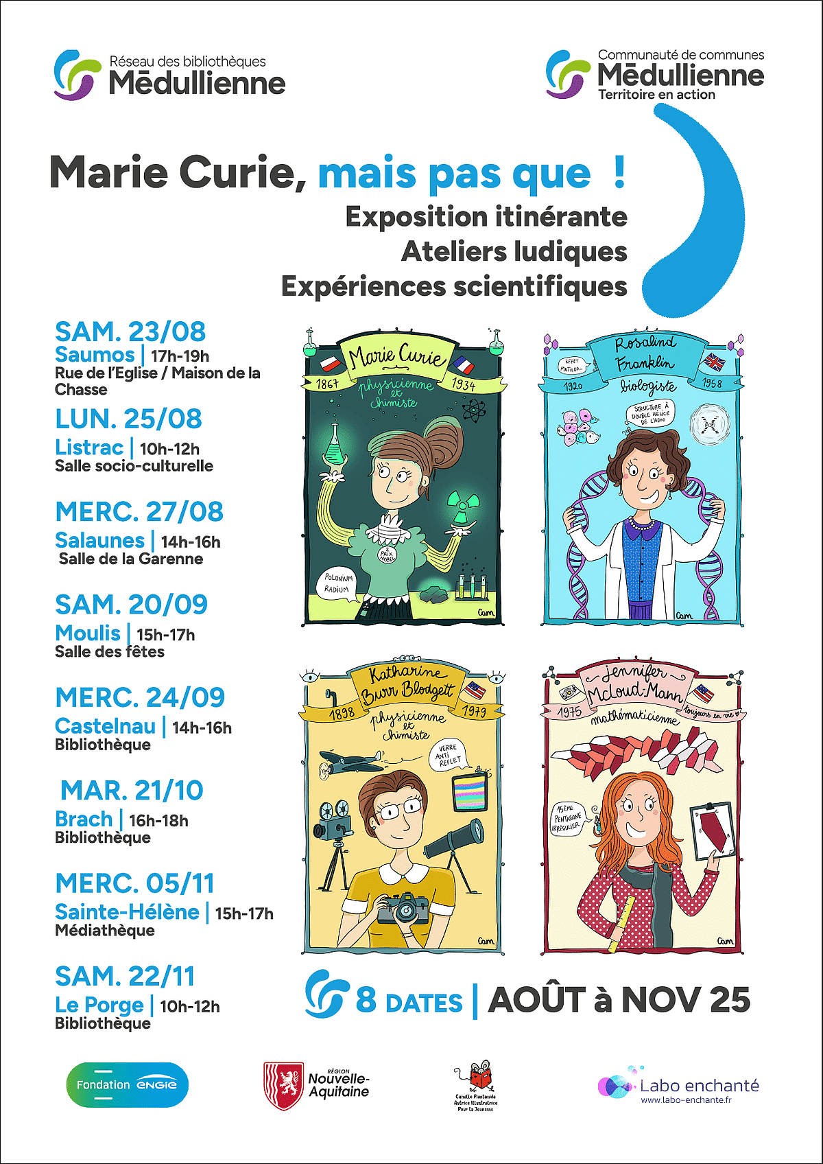 Tournée du parcours scientifique interactif "Marie Curie, mais pas que ! " dans la CdC Médulienne d'Août à Novembre 2025