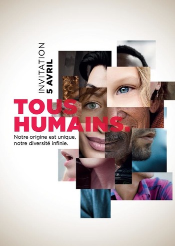 L’exposition "Tous humains." s’appuie sur les plus récentes découvertes scientifiques. Elle prend en compte la dimension historique, mais également l’actualité de ces dernières années en particulier sur le plan culturel, politique et social. Le parcours proposé aux visiteurs repose sur cinq parties constituées de panneaux informatifs, d’objets, de photos, de vidéos, d’expériences et de manipulations. Accompagnés par un animateur, les visiteurs, individuels ou en groupe, partiront ainsi à la découverte d’Homo sapiens.