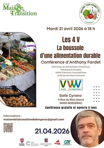 - Intervenant : Anthony Fardet, chercheur en alimentation préventive, holistique et durable - INRAE Clermont-Ferrand/Theix, Unité de Nutrition Humaine.