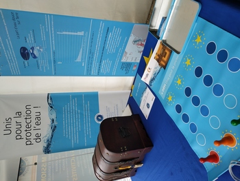 « Unis pour la protection de l’eau ! » est une exposition composée de 10 panneaux. Elle aborde la thématique de la protection de l’eau à l’échelle européenne et régionale. Les thèmes développent, par le biais de la vulgarisation scientifique, l’état des ressources en eaux et leur utilisation en Europe, une présentation synthétique de la directive cadre sur l’eau, les mesures européennes de limitation des plastiques à usage unique, le programme européen de protection de l’environnement « LIFE » illustré par un exemple néo-aquitain, des conseils, à destination des européens, de gestes quotidiens à adopter pour protéger l’eau…