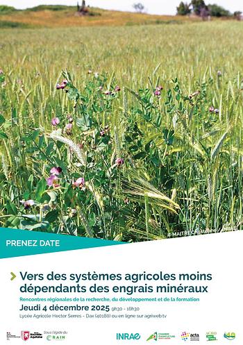 Jeudi 4 décembre 2025 au lycée agricole de Dax et sur agriweb.tv, les Rencontres régionales de la recherche, du développement et de la formation (3RDF), portent sur le thème "Vers des systèmes agricoles moins dépendants des engrais minéraux".