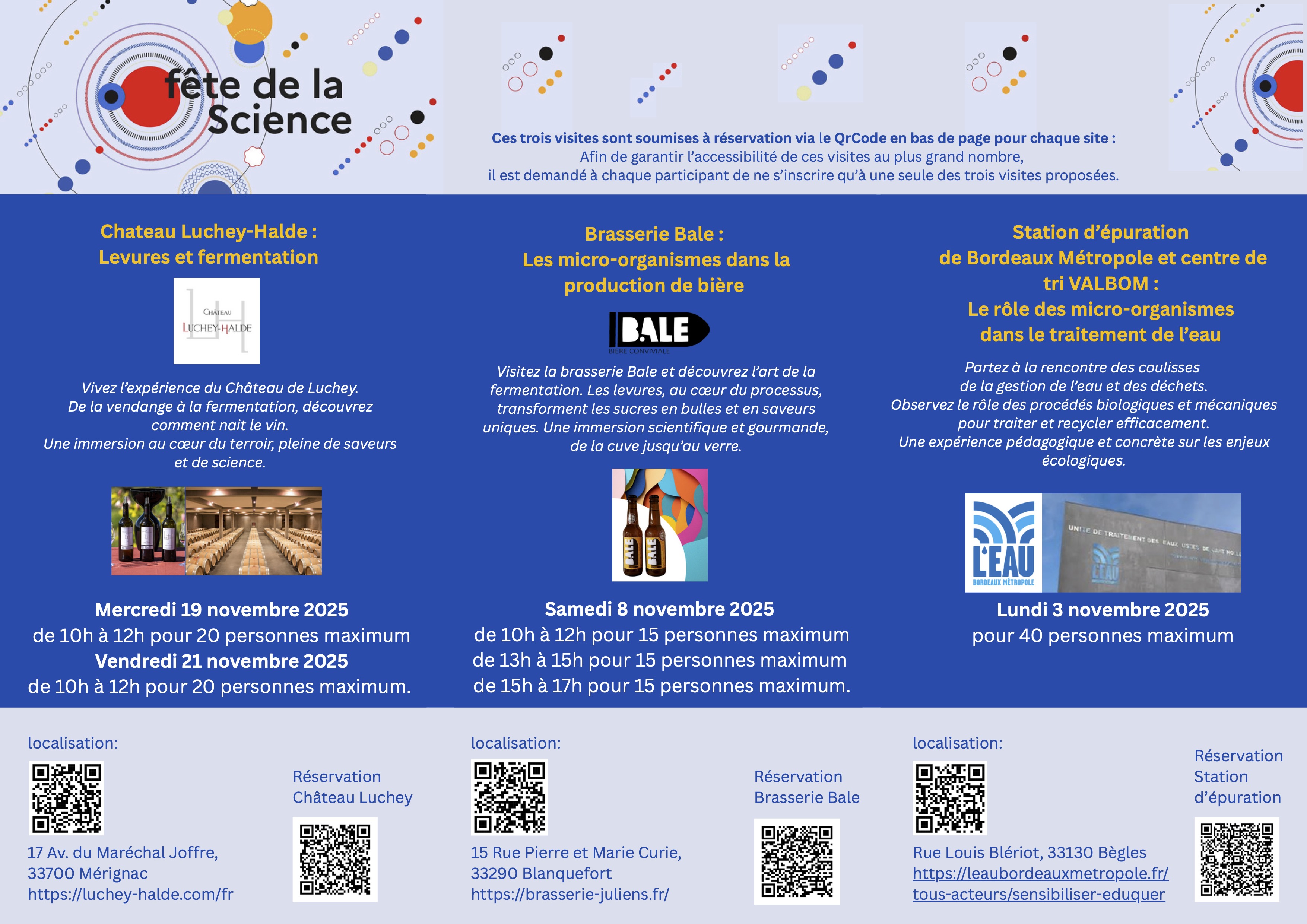 Des visites du château de Luchey, de la Brasserie Bale à Blanquefort ou de la station d'épuration de Bègles sont proposées. Gratuites, il vous suffit de flasher le QR code pour vous inscrire!